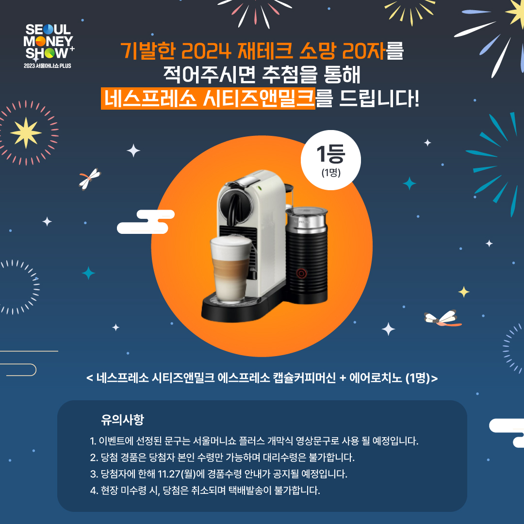 1. 해당 이벤트에 선정된 문구는 서울머니쇼 플러스 소개영상의 문구로 사용 될 예정입니다.