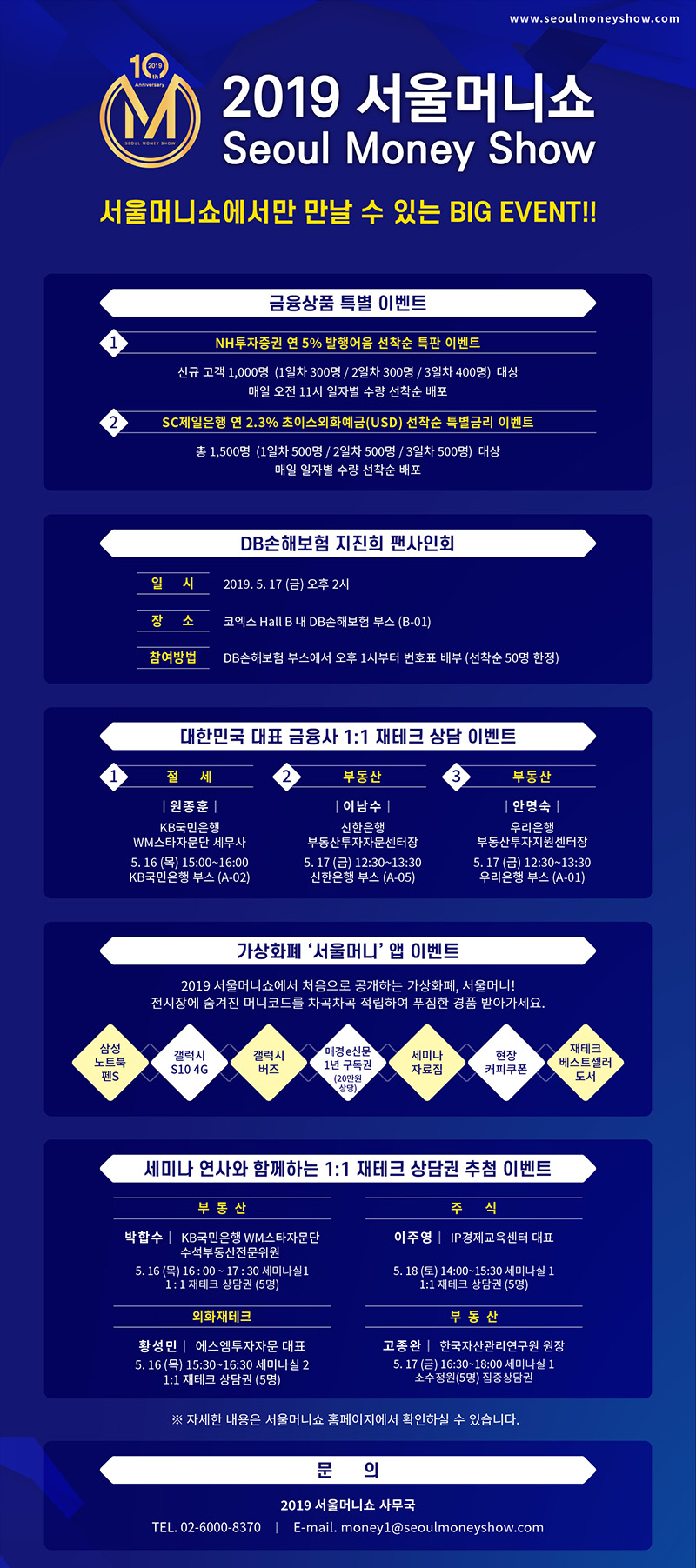 2019 서울머니쇼 에서만 만날 수 있는다양한 이벤트를 소개합니다!!
