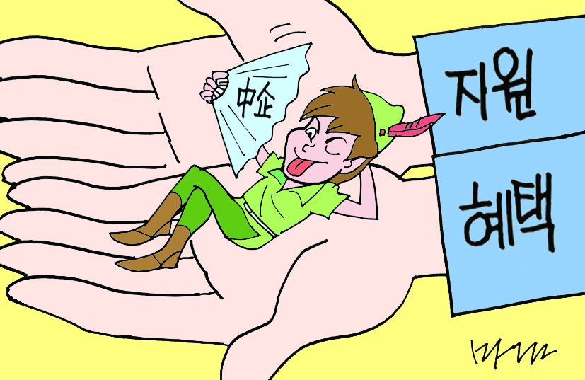 우리나라 중소기업들을 보면 다는 아니지만 중소기업에 안주하려는 기업들이 꽤 됩니다. 너무나 유명한 말이지만 이를 피터팬 증후군이라고 하지요. 피터팬은 네버랜드에서 꿈과 공상 속을 자유롭게 누비는 영원한 소년입니다. 이곳에서 그는 어른이 되지 않고 영원히 아이로 남을 수 있습니다. 어른(대기업)이 되지 않고 영원히 아이(중소기업)로 남고 싶어 하는 기업. 이런 곳에 정부가 자금을 지원해 주면 그야말로 혈세를 낭비하는 셈이 되지요. 아예 대기업이 되지 않으려고, 그러니까 중소기업에 남아서 혜택을 보려고 덩치가 커지면 회사를 쪼개는 경우도 있습니다.