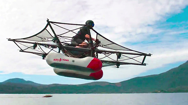 하지만 많은 혁신 기업가들은 이런 한계에 끊임없이 도전하고 있다. 구글의 공동 창업자 래리 페이지도 그중 한 명이다. 얼마 전 1인승 플라잉카 시험비행 성공 장면을 공개한 곳이 바로 그가 설립한 신생 벤처기업 키티호크다. 이번에 소개된 플라잉카에는 소형 프로펠러 8개가 달렸는데 얼핏 보면 수상비행기 같다. 물론 수직 이착륙이 가능하고 컨트롤러로 방향과 속도를 바꿀 수 있다는 점에서 수상비행기와는 완전히 다르다. 작동 원리로만 볼 때 드론과 가깝다.